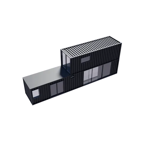 Two stacked containers maximize vertical living space.