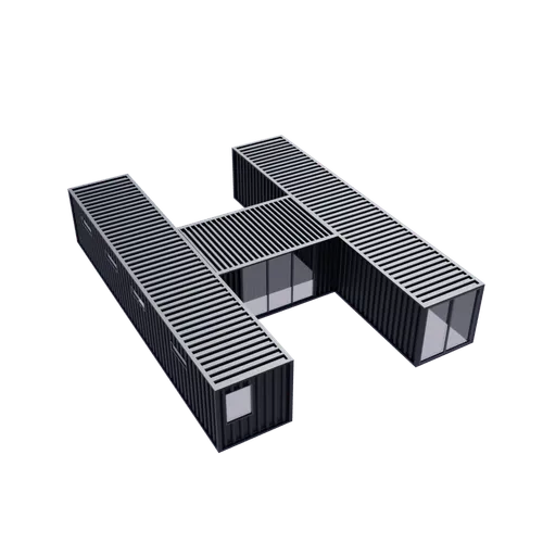 H-shaped for privacy, communal space, family living.